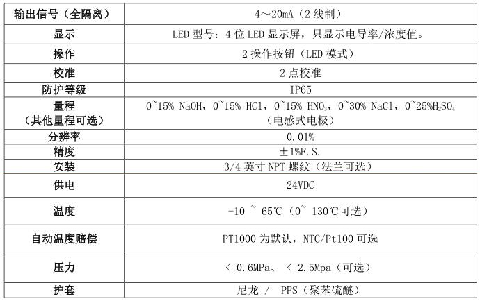 工业在线酸碱盐浓度计DDM200C仪器特点 ● 多种信号输出: 4~20 mA (2 线制模拟信号) , 0~2V (模拟信号) , RS485 ( Modbus/ RTU 数字信号)。 ● 方便连接到 PLC、DCS、工业控制计算机、通用控制器、无纸记录仪器或触摸屏等第三方设备。 ● 电极可使用多种连接件,包括镀金 VP 接头、BNC 接头等。用螺纹固定,电极更换方便。 ● 易于安装:3/4 英寸 NPT 螺纹(管螺纹),便于安装在管道和和罐体。探头和显示部分可分开,通过电缆连接。 ● IP65 防护等级。